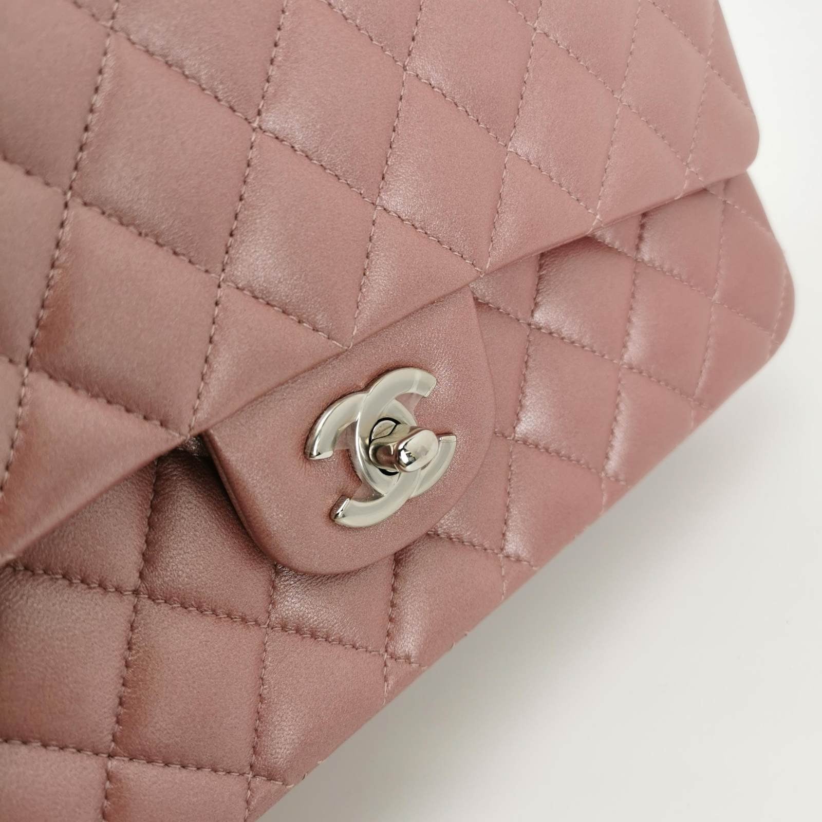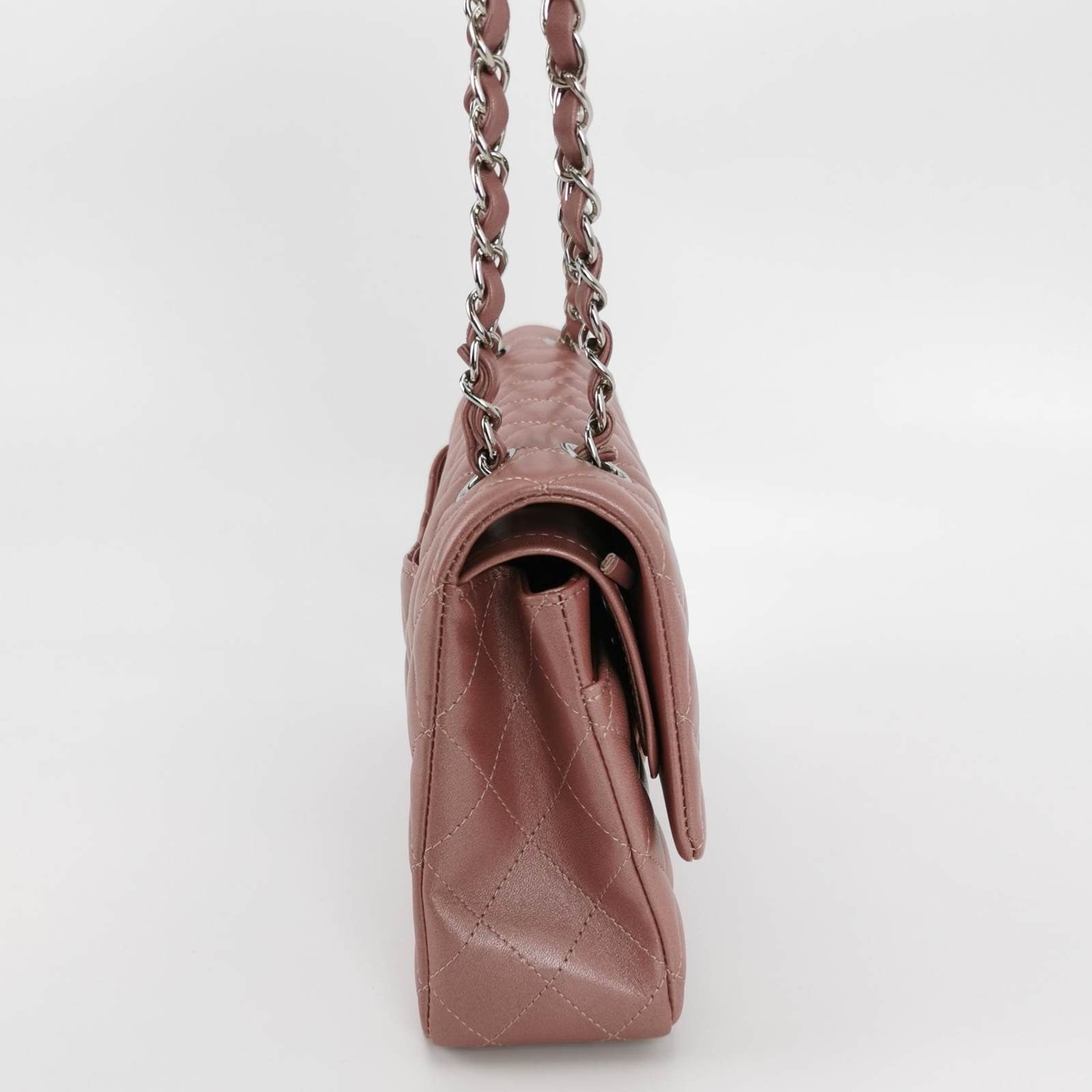 CHANEL Classic Medium Double Flap Iridescent Mauve Lambskin with silver hardware
